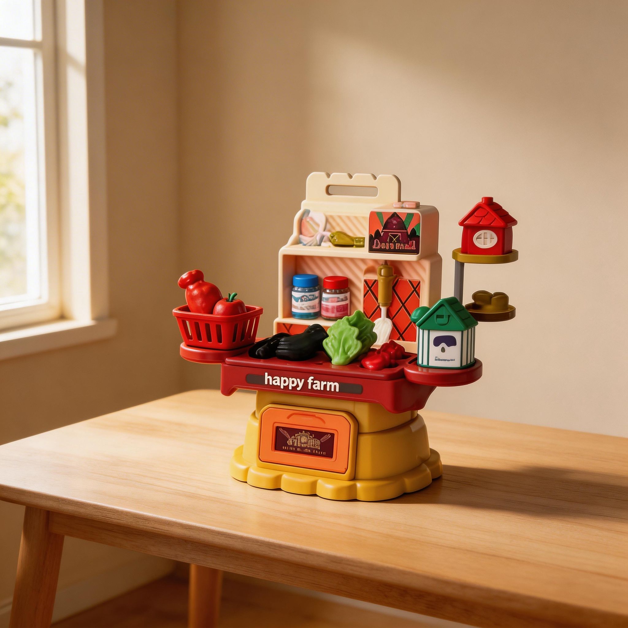 Fabricado con materiales seguros y resistentes, este set está diseñado para un uso prolongado y cómodo para los pequeños. Ayuda a desarrollar la coordinación mano-ojo, la motricidad fina y la capacidad de organización mientras los niños simulan cuidar la granja y sus animales.