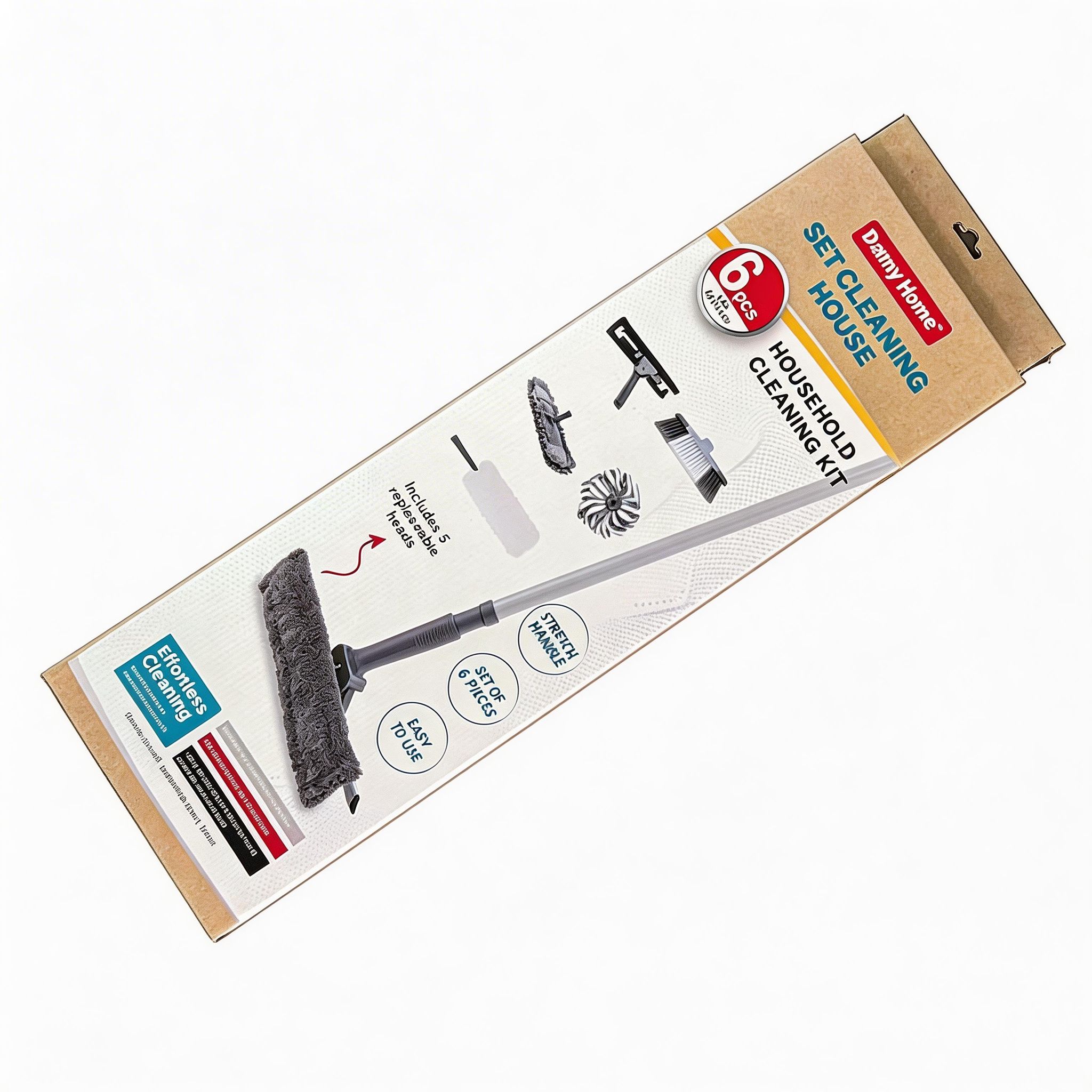 Mantén tu hogar impecable con este práctico set de limpieza de 6 piezas, diseñado para cubrir diferentes necesidades en una sola solución. Incluye herramientas esenciales que te permiten limpiar pisos, superficies y rincones de forma eficiente, facilitando las tareas del día a día en el hogar.