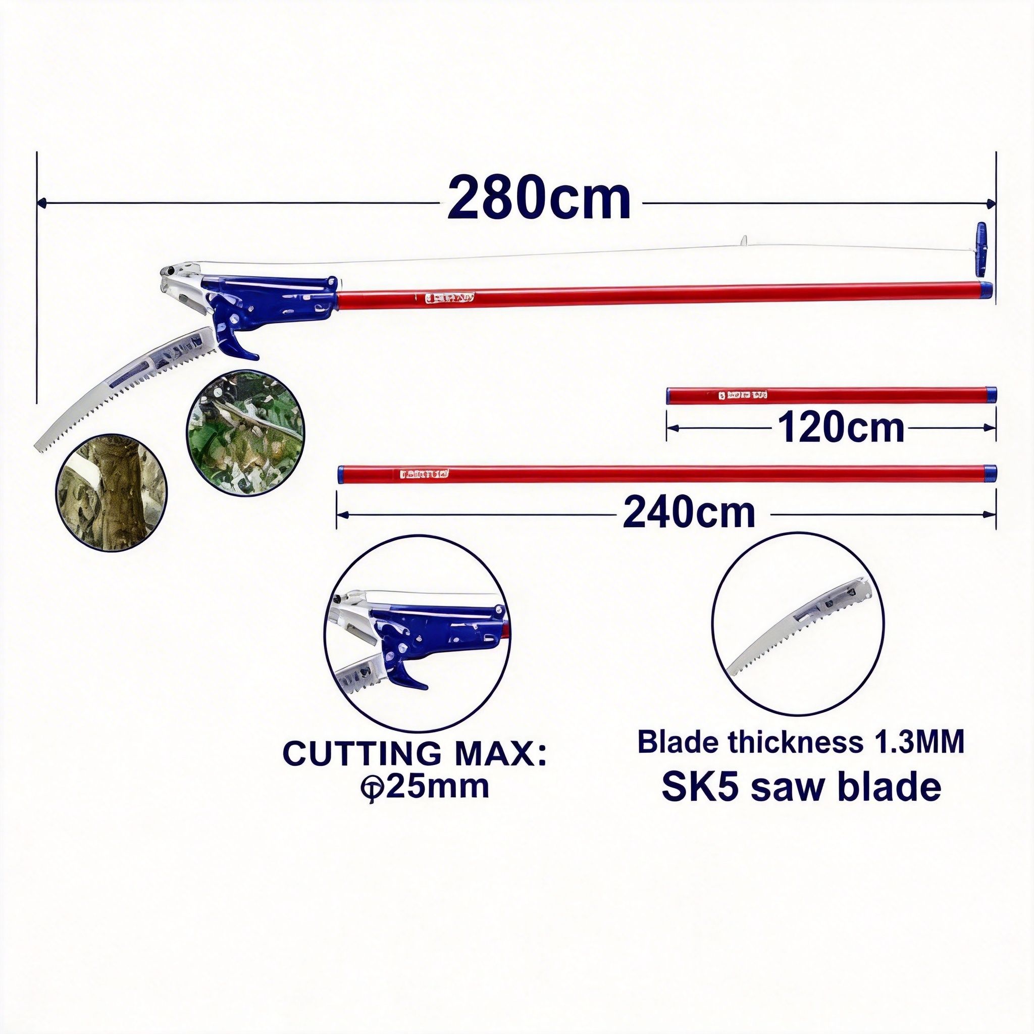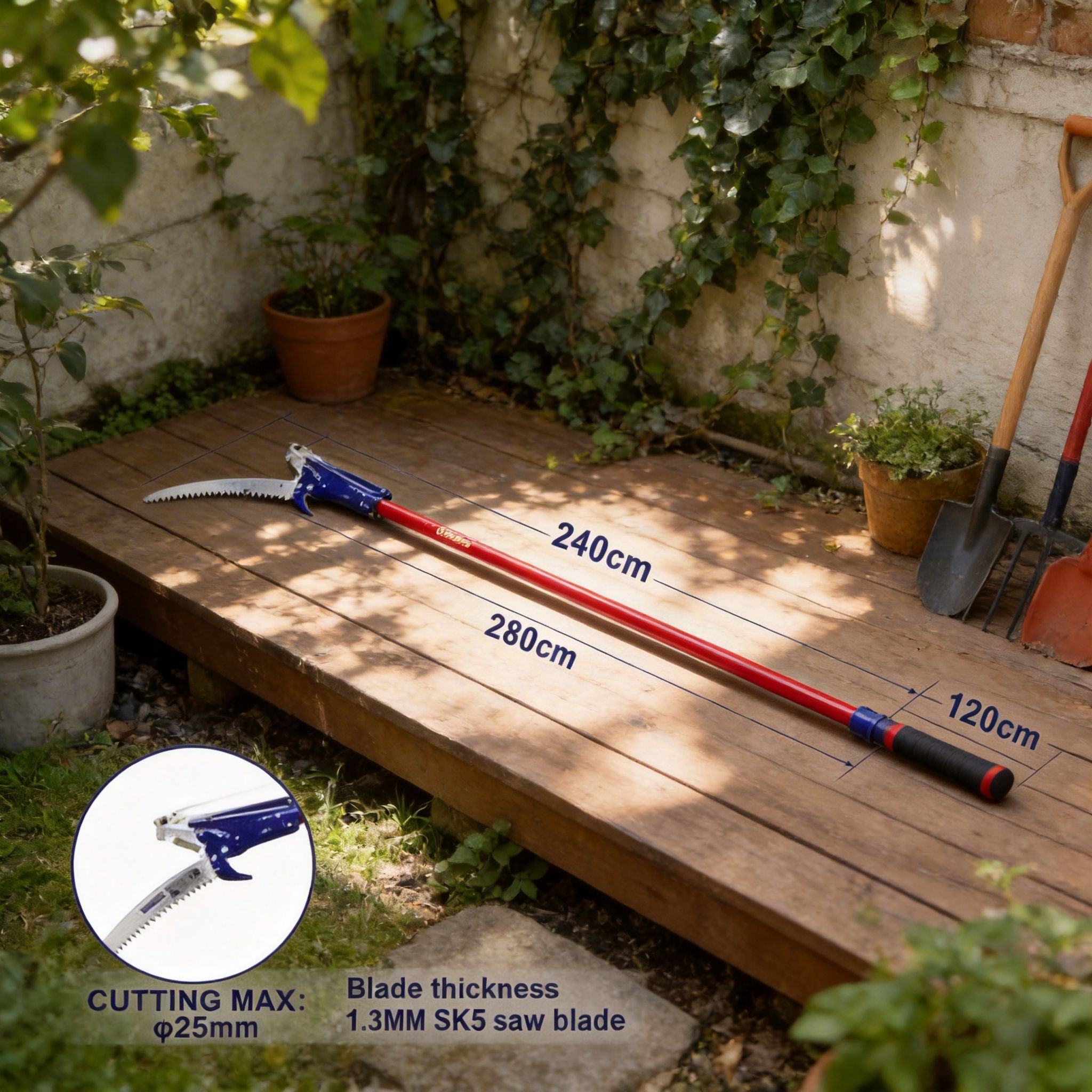 Es una herramienta práctica para mantenimiento de jardinería y poda en altura, pensada para brindar mayor alcance, comodidad y seguridad durante el trabajo. Su sierra está diseñada para ayudar a realizar cortes más eficientes en ramas, mientras que el cuerpo extensible permite trabajar con mayor facilidad en espacios donde una herramienta corta no sería suficiente.
