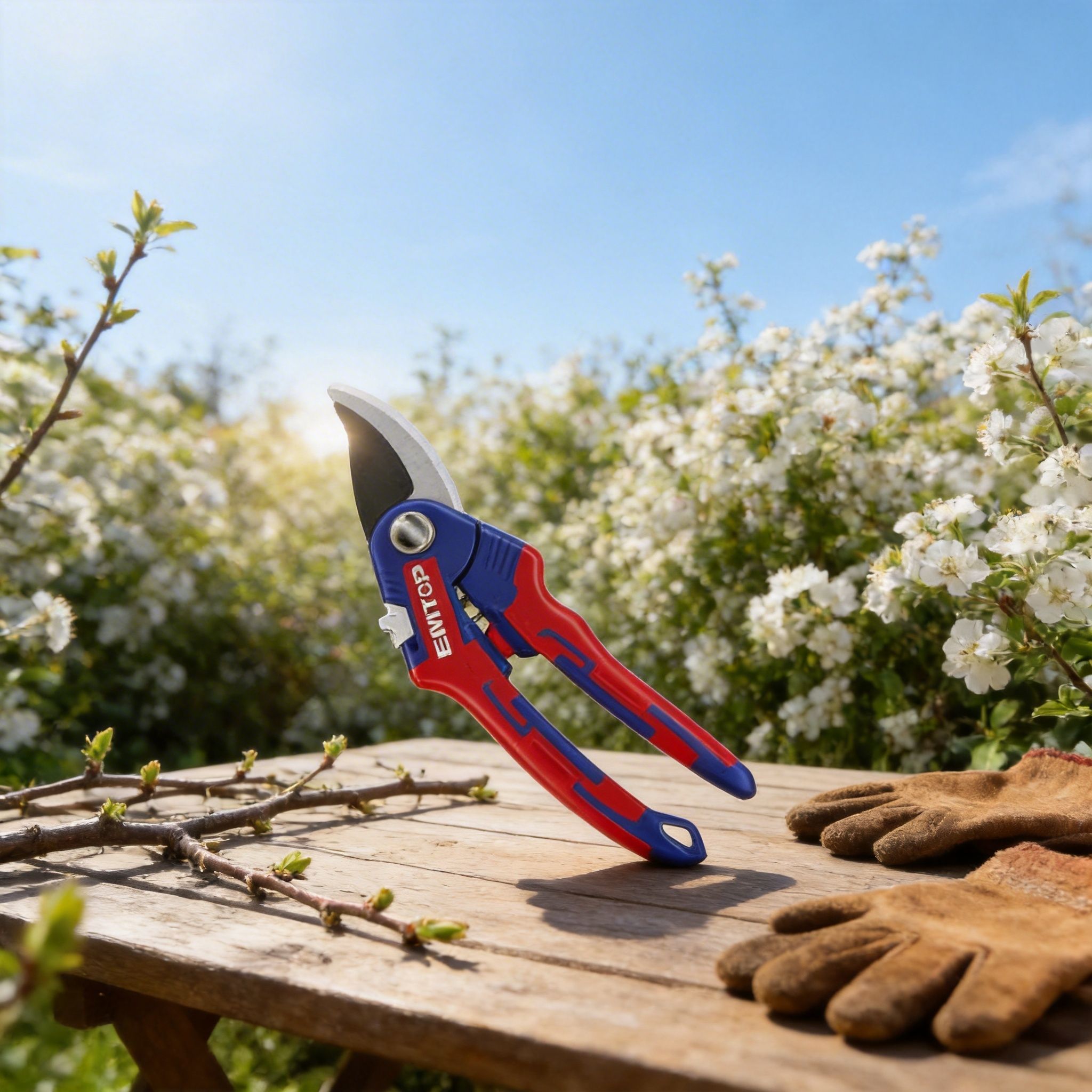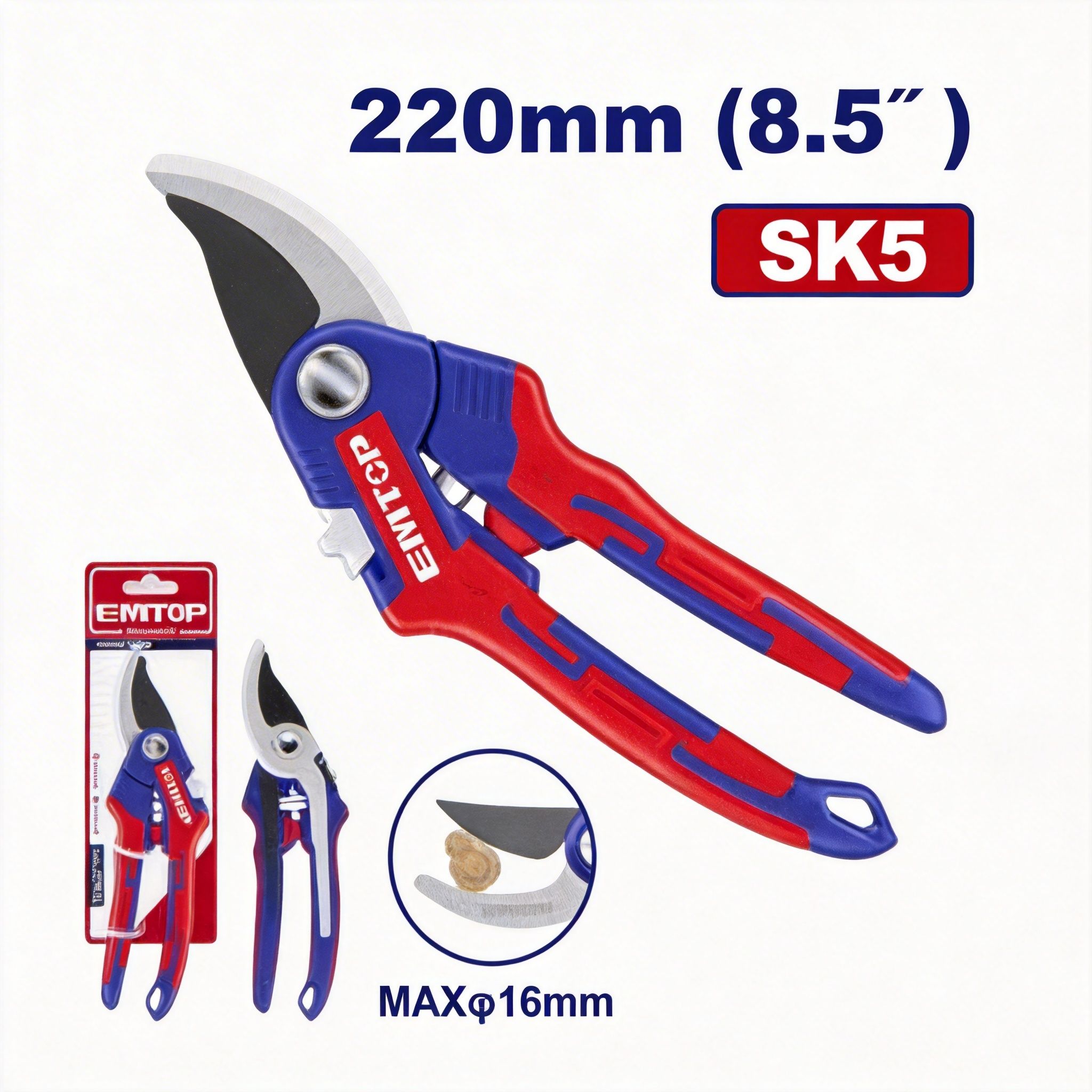 Tijera para podar jardín EMTOP de 220 mm (8.5″), ideal para trabajos de jardinería, mantenimiento de plantas y poda ligera en ramas delgadas, flores y brotes. Su diseño práctico permite realizar cortes más cómodos y precisos, siendo una excelente opción para el cuidado diario de jardines, huertos y áreas verdes.