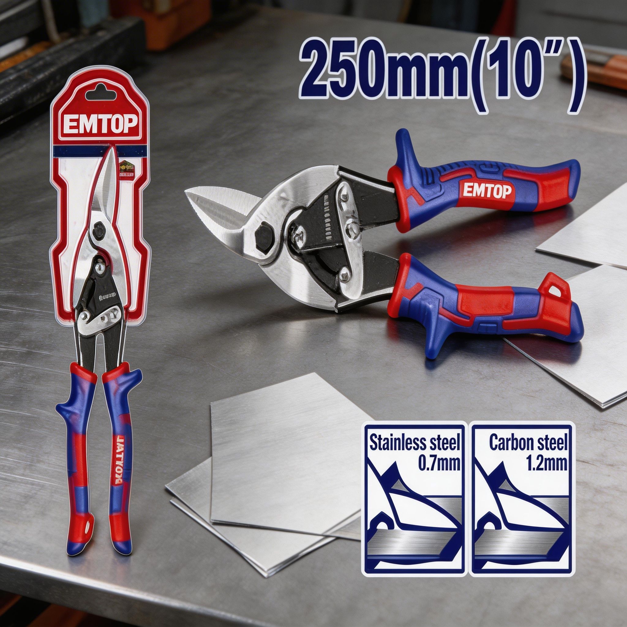 La línea de tijeras de aviación EMTOP está diseñada para cortes precisos y prácticos en trabajos de instalación, reparación, hojalatería y mantenimiento general. Estas herramientas son ideales para cortar láminas, metales delgados y otros materiales similares con mayor control, permitiendo al usuario trabajar de forma más cómoda según el tipo de corte que necesite realizar. Dentro de esta línea se incluyen opciones para corte recto largo, así como diferentes tijeras de aviación de 10 pulgadas y un juego de 3 piezas que brinda mayor versatilidad para distintas aplicaciones.