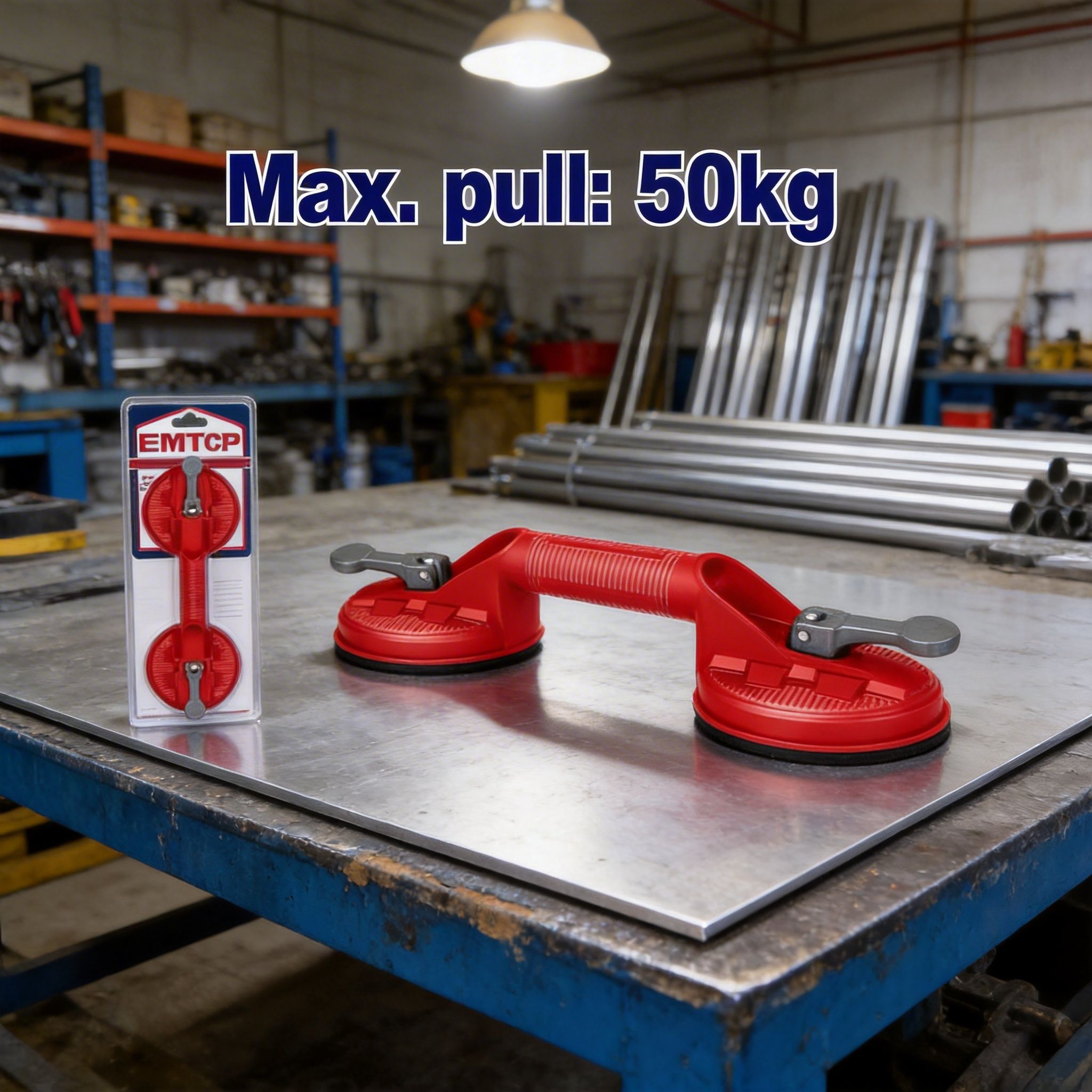 Ventosa EMTOP con capacidad máxima de 50 kg, ideal para levantar, mover y manipular superficies lisas de forma más práctica, segura y controlada. Es una herramienta útil para trabajos de instalación, carga, mantenimiento y colocación de materiales como vidrio, cerámica, lámina, superficies pulidas y otros elementos con acabado liso.
